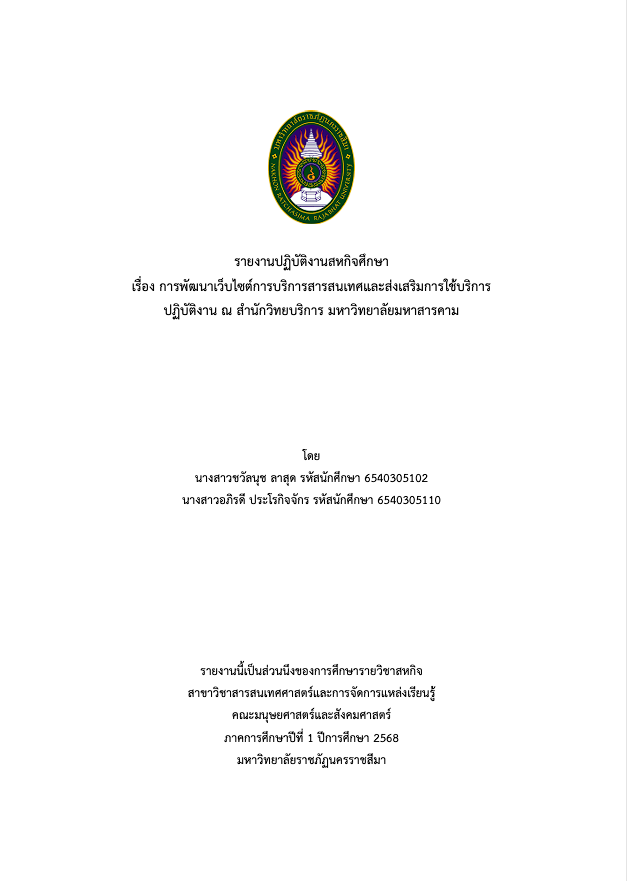 การพัฒนาเว็บไซต์เพื่อบริการสารสนเทศและส่งเสริมการใช้บริการของสำนักวิทยบริการ มหาวิทยาลัยมหาสารคาม