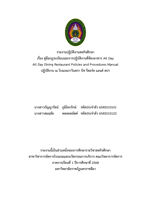 คู่มือกฎระเบียบและการปฏิบัติงานที่ห้องอาหาร All Day